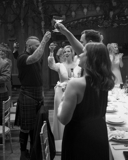 As night fell, the grand Stag Ballroom came alive. Guests filled the floor for a traditional Scottish ceilidh, the laughter and music echoing through the wood-panelled hall and making the evening feel truly unforgettable.
